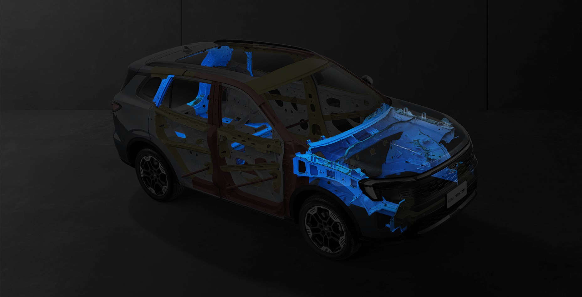 高強鋼材構築,時刻安全前行。全車採用超過 65% 的超高強度鋼材,結合八橫六縱鋼骨架構,精密築起360°環形堅實結構,打造堅不可摧的安全堡壘,並運用雷射焊接整體熱成型技術,望造高強度一體式門框,全面強化車身結構,以鋼為盾,成就每次無懼前行的底氣。