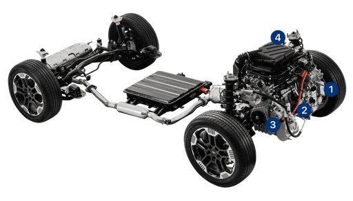 Per4mance Hybrid 四電驅渦輪油電系統,P3 + P1 實現電能直驅與高效發電。
